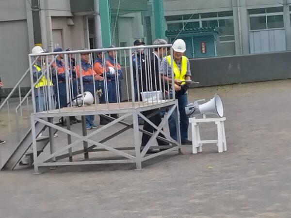 口野さんは防災担当役員として、当自治会独自の防災マニュアルの発行(各戸に配布されています)、毎月の「防災・防火情報」の発行(例えば11月度は「身近な素材の活用術―4:大判ハンカチの活用方法」)で、会員への防災への備えに対する知識の普及活動を続けられています、写真は今年「地域連携day」で鷹中生との合同による防災訓練、6町内会合同の「鷹中震災時避難所訓練」で、推進担当として活躍中の口野さんです